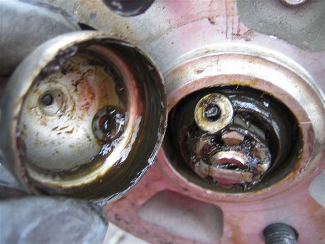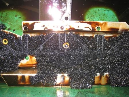 Foam Baffle problems, like brakes, also seem to be a regular theme. The two pictures (left) are of the sump and oil pick-up pipe from a car that came through the workshop. This car started to indicate a drop in oil pressure at a track-day. Fortunately it was a wet day so it wasn’t possible to push the car too hard. On removing the sump it was discovered that all of the remains of the foam baffle were jammed in the oil pickup. Only time will tell if permanent engine damage has occurred. |