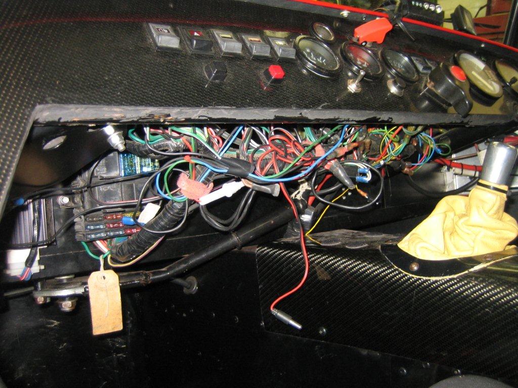 ‘National Grid’ sprang to mind when I saw this wiring loom. The situation was not helped by the fuse box being fitted upside down. |